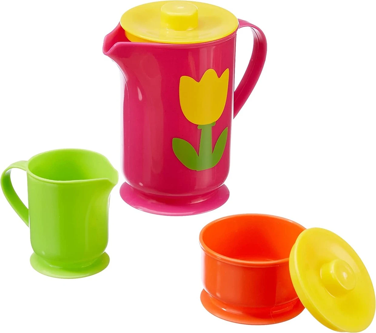 Dit kleurrijke Koffie- en theeservies is voorzien van alles wat je nodig hebt om gezellig koffie te kunnen drinken met je poppen, knuffels of papa en mama.. Inclusief een koffie-/theepot, kopjes, schoteltjes, theelepeltjes en een dienblad. Bestaat uit 14 stukken speelgoed. Leeftijd 1+ jaar.