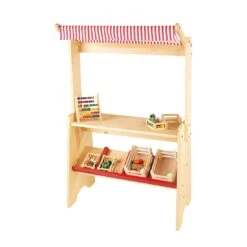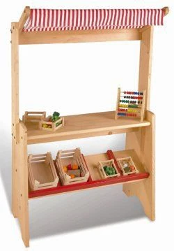 Zeer stabiele marktkraam met toonbankhoogte 57 cm. Geschikt voor kinderen van 2 – 8 jaar.
