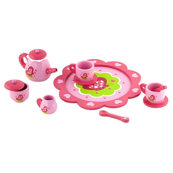Leuke theeset bestaande uit een dienblad, theepot, 2 theekopjes m. schotel en lepeltje, een suikerpotje en een melkkannetje.